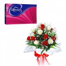Dozen red roses 1/2 kg dryfruits 1/2 kg mix mithai